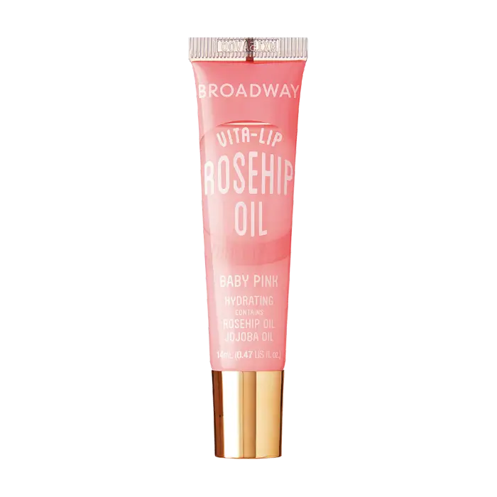 Our bestselling hydrating high shine lip gloss is now available in pink and nude tints! Broadway Vita-Lip Tinted Lip Gloss uses rosehip oil and coconut oil to moisturize with a delicate scent.