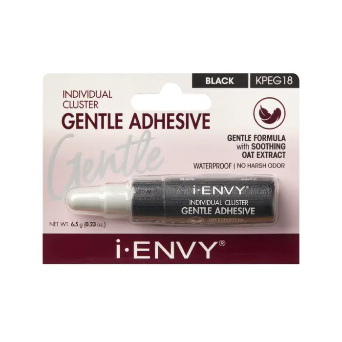 i-ENVY by Kiss Individual Cluster Gentle Lash Adhesive, featuring calming oat extract, offers a waterproof, odor-free formula, providing reliable hold and comfort for all skin types, with precision application for perfect lash placement.