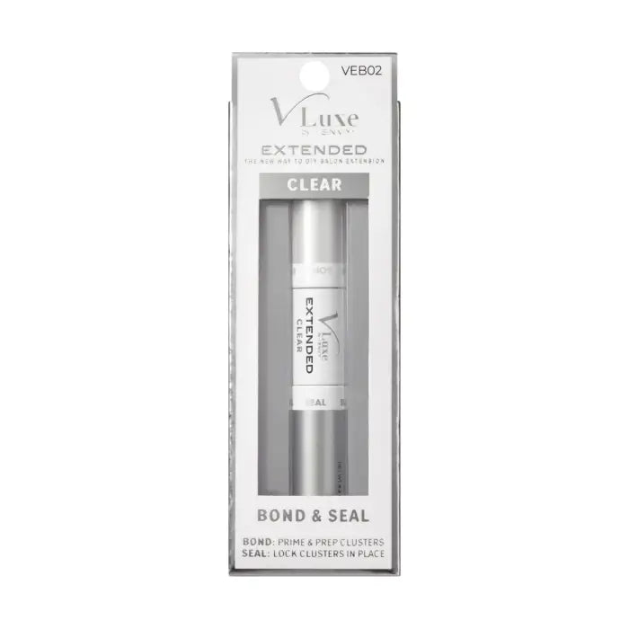 Introducing the V-Luxe Extended Clear Bond & Seal, our innovative water-resistant dual-ended lash adhesive featuring a bond to prime and prep your natural lashes and a seal to securely lock under lash clusters in place. Achieve an immaculate and seamless lash extension look with our clear, residue-free strong-hold formula made for lashes to stay all day!