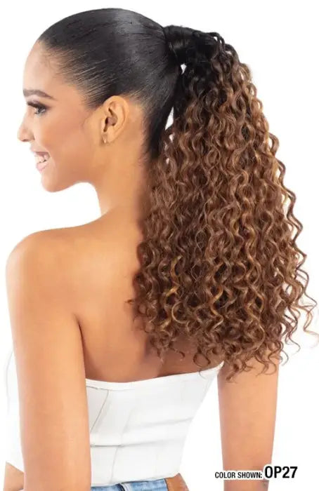 Model Model Italian Curl Secret Pocket PonyPro is designed for quick, effortless styling with a polished finish. This ponytail cap allows you to neatly tuck in your natural hair for a secure, natural-looking fit. The flexible V-shape tension and roomy cap make it comfortable for all hair types, whether thick or fine. Made with heat-resistant fiber that’s safe to curl or straighten up to 400°F, it’s pre-styled and ready to wear—perfect for everyday glam with zero hassle.